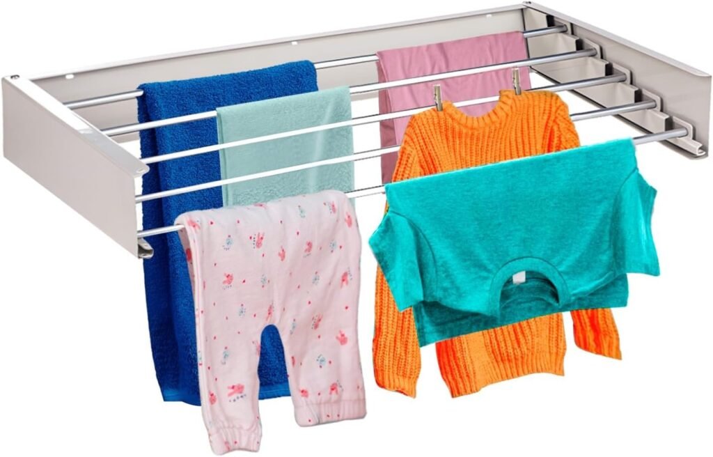 Mikomika Sleek Wall‑Mounted Laundry Organizer Designed with a clean, modern look that matches any home decoration. The smooth surface and elegant shape add beauty to your space while keeping laundry organized. Air dry clothes gently to protect fabric and keep your living area fresh and tidy.