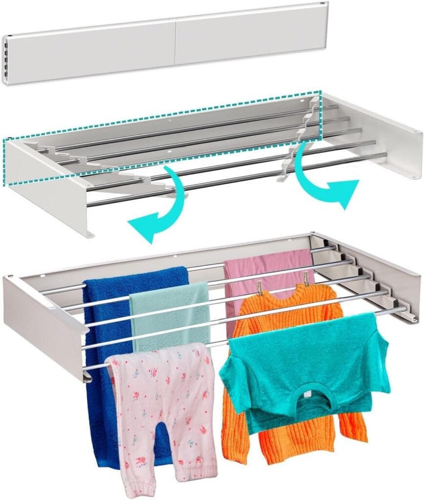 Mikomika Versatile Foldable Drying Hanger Comes with complete mounting accessories for quick and easy installation. Great for hanging clothes, underwear, socks, towels, hats and accessories. Suitable for home, dorm, hotel and balcony use, bringing extra drying space wherever you need it.