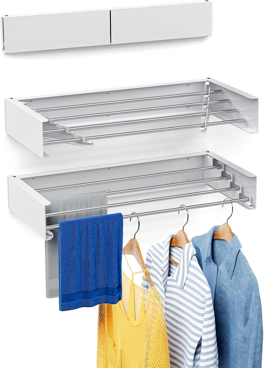 Mikomika Heavy‑Duty Wall Clothes Rack Made of high‑quality rust‑resistant material for long‑lasting use. Stable wall‑mounted design offers strong loading capacity to hold wet clothes, towels, blankets and more without bending or shaking. Reliable for daily drying needs indoors and outdoors.