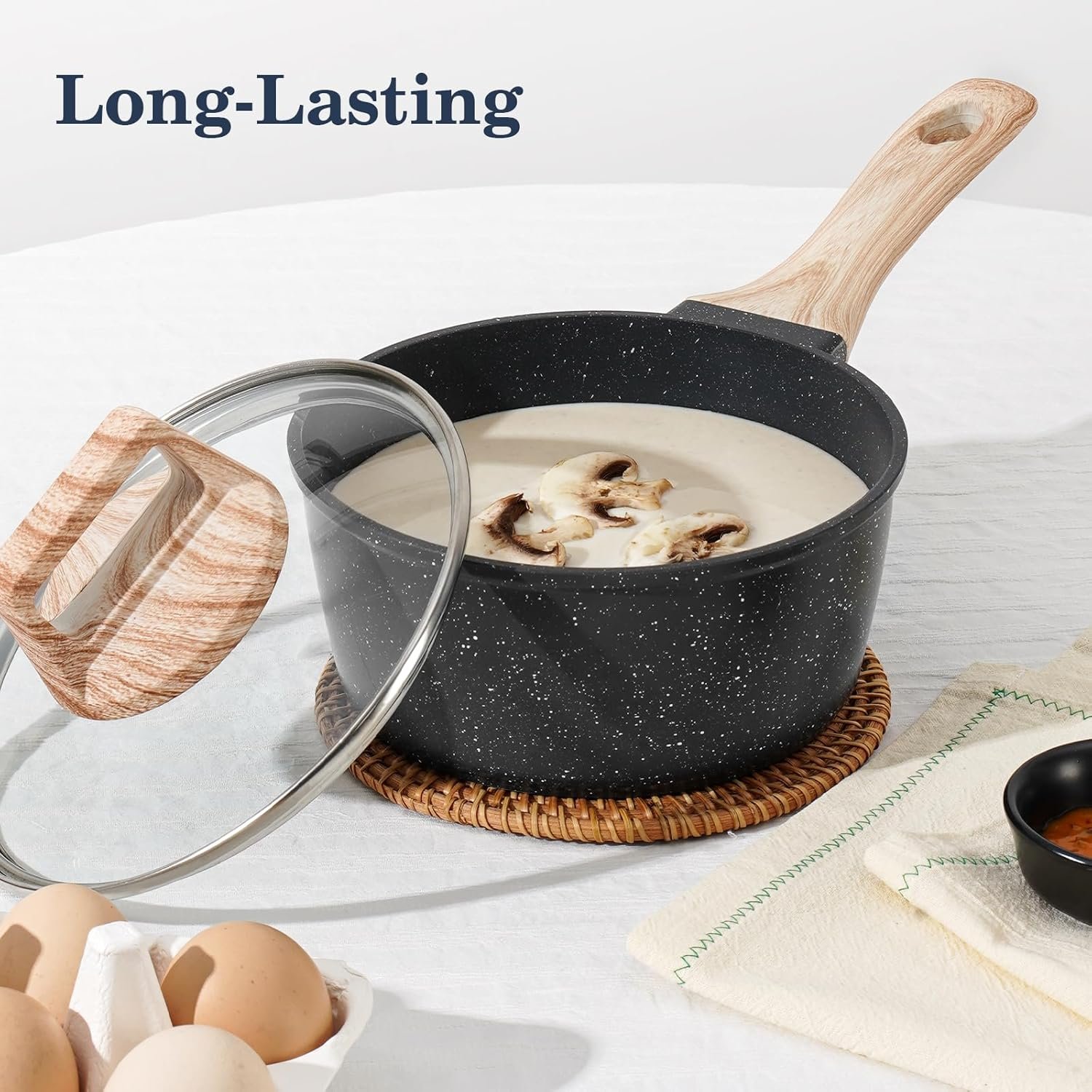 • Safe, Non-Toxic Cookware You Can Trust – Designed for healthier, worry-free cooking. Crafted with a durable granite non-stick coating free from harmful chemicals like PFOS, PFOA, lead, and cadmium, this pots and pans set ensures your meals are as clean and wholesome as the ingredients you use.